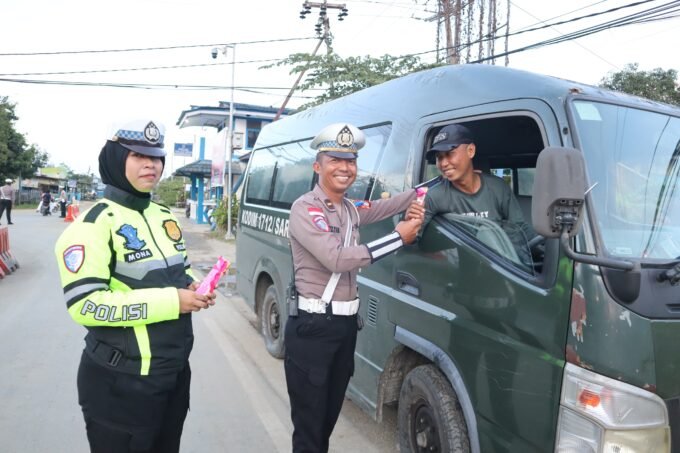 Sentuhan Cinta di Hari ke-14 Ops Cartenz 2025, Sat Lantas Sarmi Bagikan Bunga untuk Pengendara