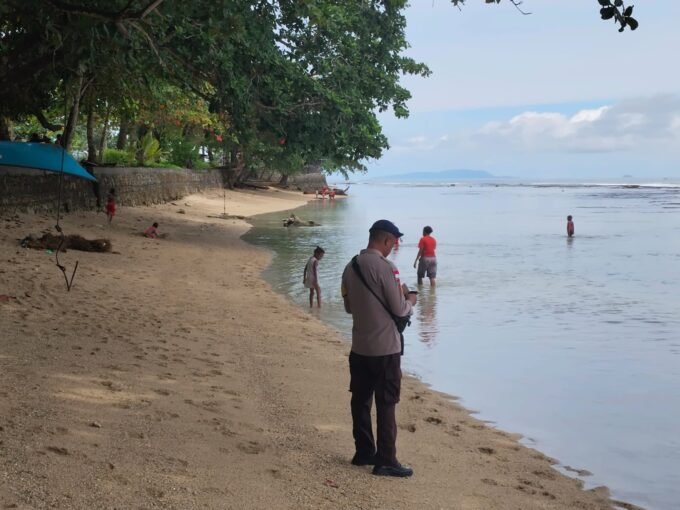 Satpolairud polres sarmi laksanakan pengamanan dan pemantauan serta himbauan keselamatan berwisata di pantai dan perairan saat hari raya libur imlek