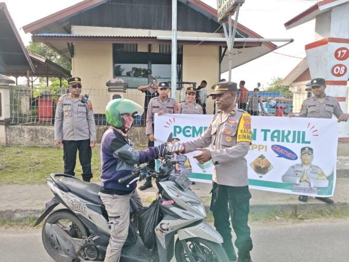 Polres Mappi Bagikan 100 Paket Takjil kepada Warga yang Melintas di Depan Mako