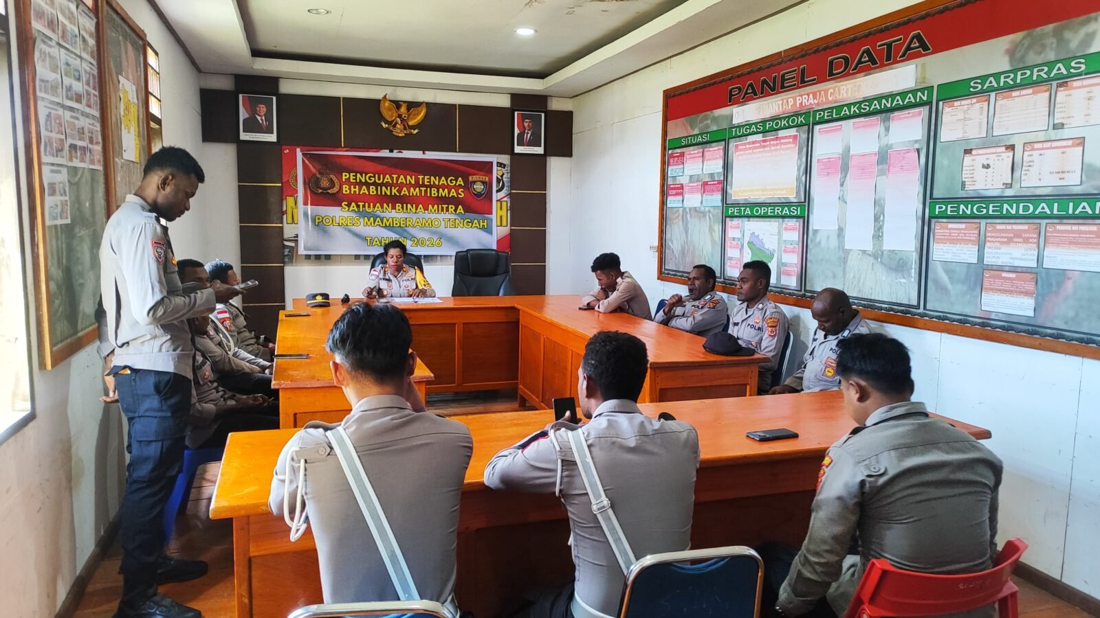 Mamberamo Tengah – Sebanyak 22 personel Bhabinkamtibmas Polres Mamberamo Tengah mengikuti kegiatan penguatan tugas yang dipimpin langsung oleh Kasat Binmas, IPTU Wilhelma Kurut, pada Selasa (10/3/2026) di ruang Vicon Polres.