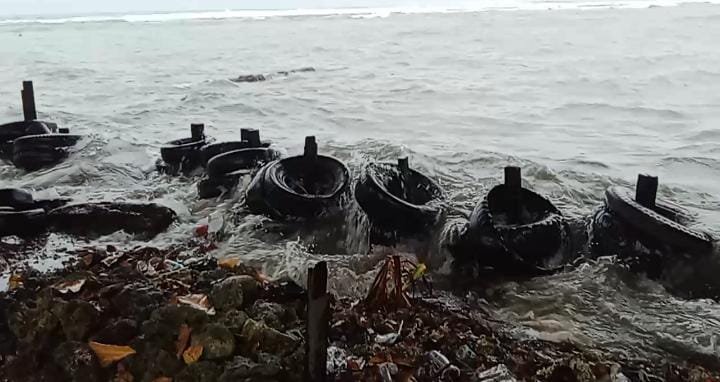 KBO Satpolairud Polres Sarmi Tinjau Warga Terdampak Gelombang Tinggi di Armo Pesisir