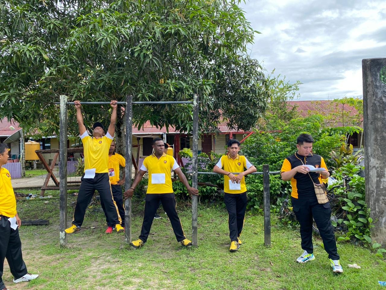 Sebelum memulai aktivitas fisik, tim Dokkes Polres Mappi terlebih dahulu melakukan pemeriksaan kesehatan ketat, termasuk pengecekan tekanan darah dan denyut nadi untuk memastikan setiap personel dalam kondisi layak mengikuti tes.
