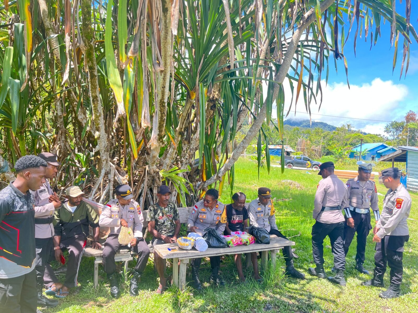 Bantuan berupa sembako dan kebutuhan pokok lainnya diserahkan secara langsung kepada masyarakat di Kelompok Tiga, sebagai bentuk dukungan Polri untuk meringankan beban warga dan meningkatkan kesejahteraan masyarakat setempat.
