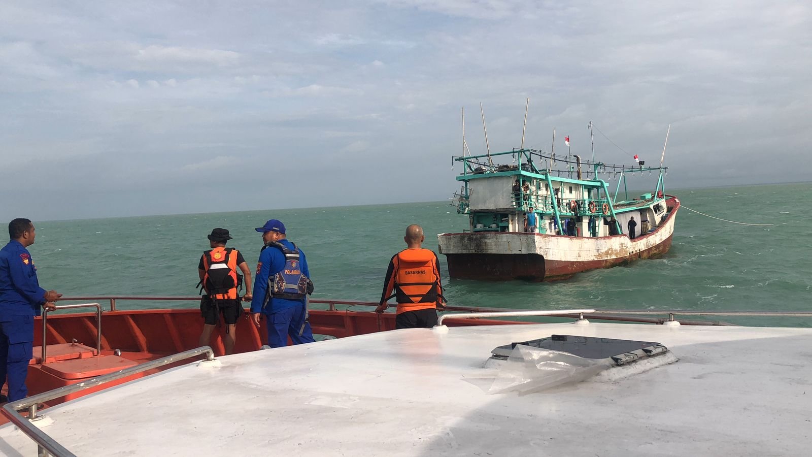 Kondisi cuaca di lokasi pencarian hari ini dilaporkan hujan dengan tinggi gelombang 1,50 hingga 2,75 meter, namun operasi SAR tetap dilaksanakan dengan mengutamakan keselamatan seluruh personel yang terlibat.