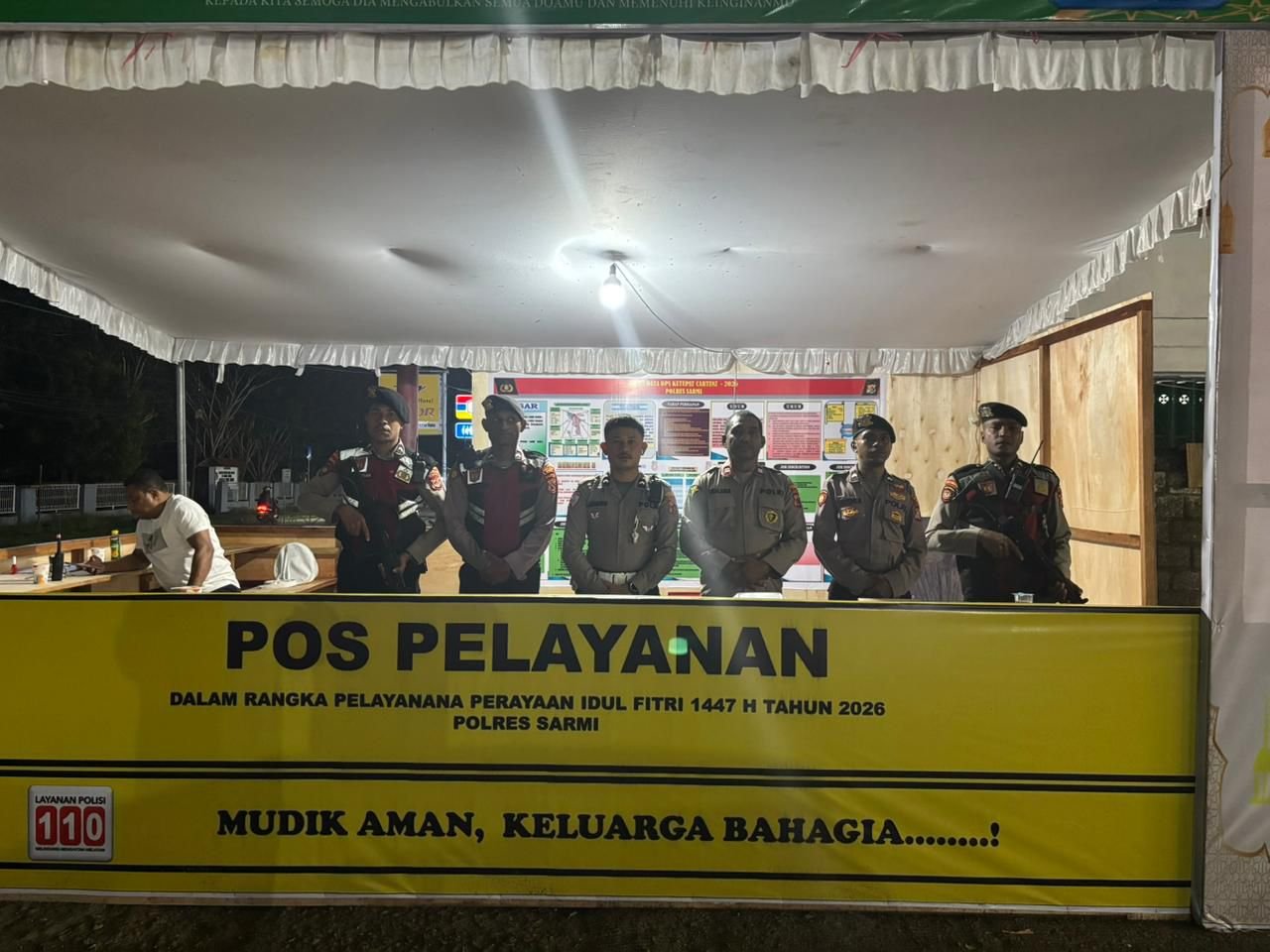 Sarmi – Dalam rangka memberikan rasa aman dan nyaman kepada masyarakat selama perayaan Idulfitri 1447 H, personel Polres Sarmi melaksanakan kegiatan pengamanan dalam rangka Operasi Ketupat Cartenz Tahun 2026 di sejumlah Pos Pengamanan (Pos Pam) yang telah didirikan di wilayah Kabupaten Sarmi. Jum’at (13/3/26)