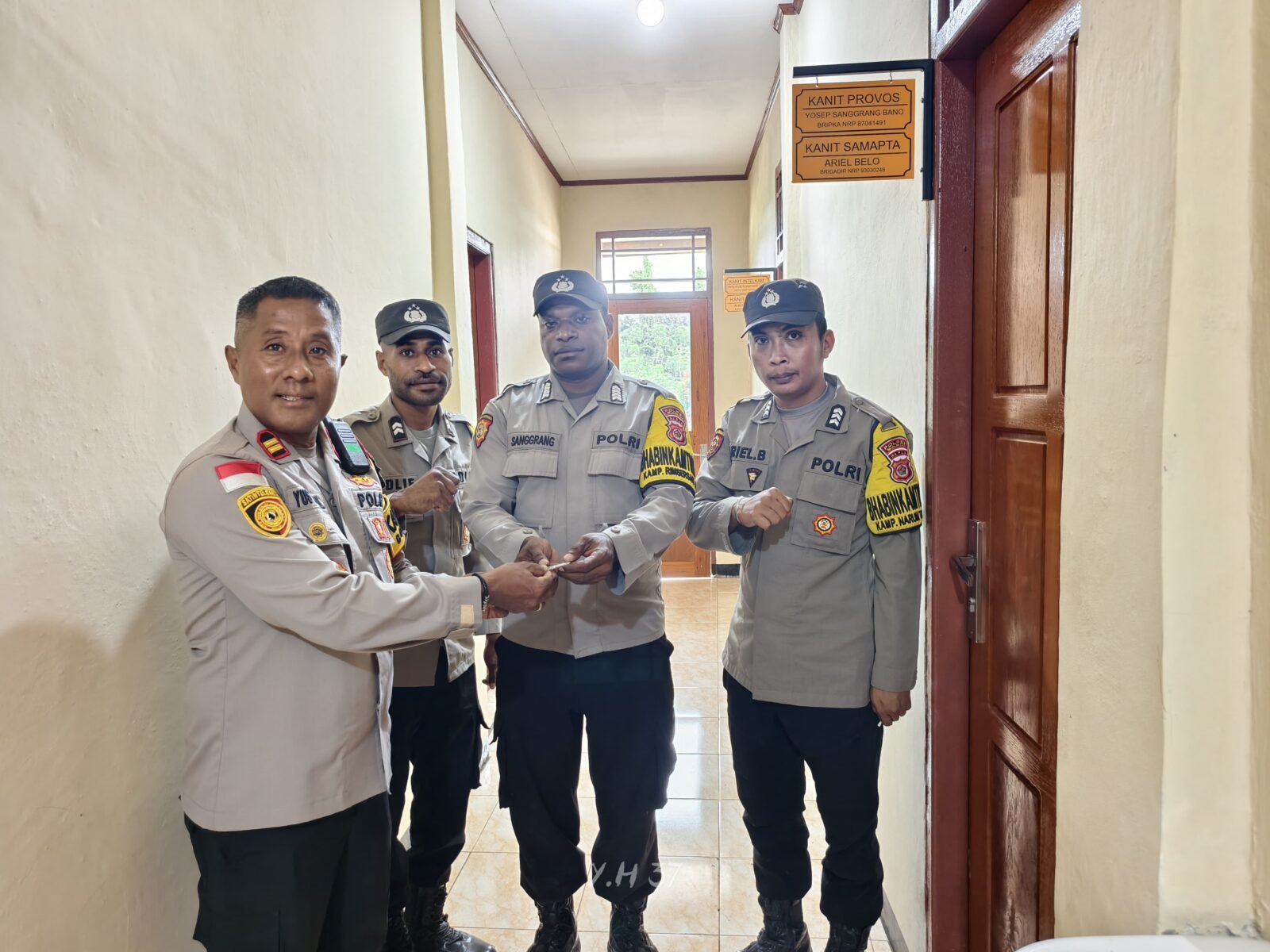 Pada Rabu (18/03/2026), Kapolsek Bonggo bersama Wakapolsek Bonggo secara resmi menyerahkan kunci pintu/ruangan kerja kepada para Kepala Unit (Kanit) yang ruangannya telah selesai direhabilitasi dan dibangun kembali.