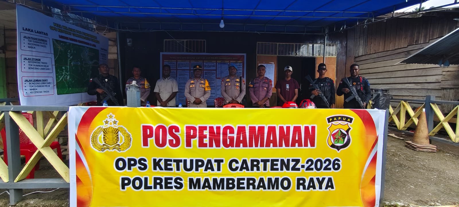 Polres Mamberamo Raya yang wilayahnya terbagi dengan adanya sungai Mamberamo sehingga dalam pembentukan Pos Pelayanan Terpadu dalam rangka pelaksanaan Operasi Ketupat Cartenz 2026 tebagi dua titik pos pengamanan yakni Pos Pengamanan Burmeso dan Pos Pengamanan Kasonaweja yang dalam pelaksanaan pengamanannya terdiri dari anggota Polres Mamberamo Raya, Anggota Brimobda Papua BKO Mamberamo Raya dan Anggota TNI, yang mana pembentuk Pos Pelayanan Terpadu ini adalah untuk mengamankan arus mudik dan pelaksanaan hari Raya Idul Fitri 1447H dapat berjalan dengan aman dan lancar.