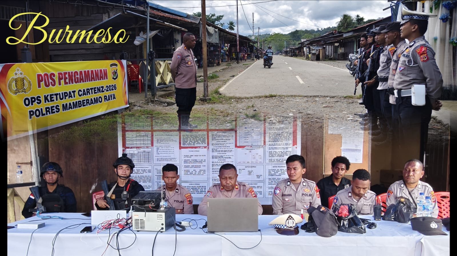 Bumeso, 16/03/26 – Menjelang masukanya bulan Ramadhan Kapoles Mamberamo Raya AKBP Arifin melalui Kabag Ops Polres Mamberamo Raya Kompol. Yerianto Somalinggi, SH melaksanakan pembentukan Pos Pelayanan Terpadu dalam rangka Operasi Ketupat Cartenz 2026 guna mengamankan arus mudik dan Hari Raya Idul FItri 1447 H juga mendapat pengawasan melekat yang dilakukan oleh Polda Papua dalam bentuk Zoom Meeting terkait pelaksanaan Operasi Ketupat yang sedang berjalan agar situasi Kamtibmas dapat berjalan dengan aman dan lancar.