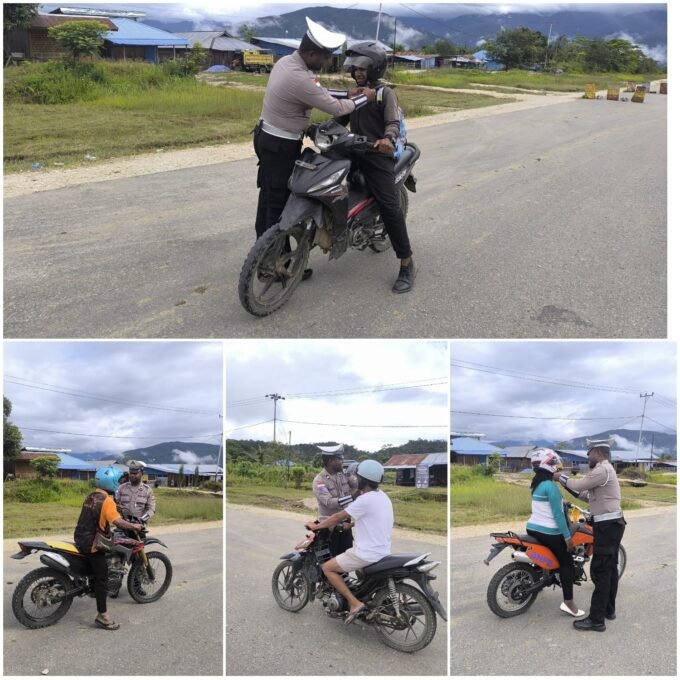 Satlantas Polres Mamberamo Tengah Tingkatkan Disiplin Berlalu Lintas Lewat Strong Point Pagi