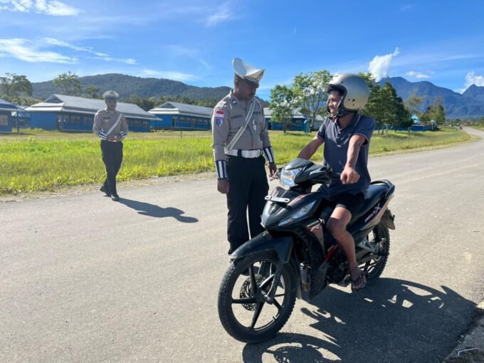 Strong Point Pagi, Sat Lantas Polres Mamberamo Tengah Edukasi Pengendara Motor