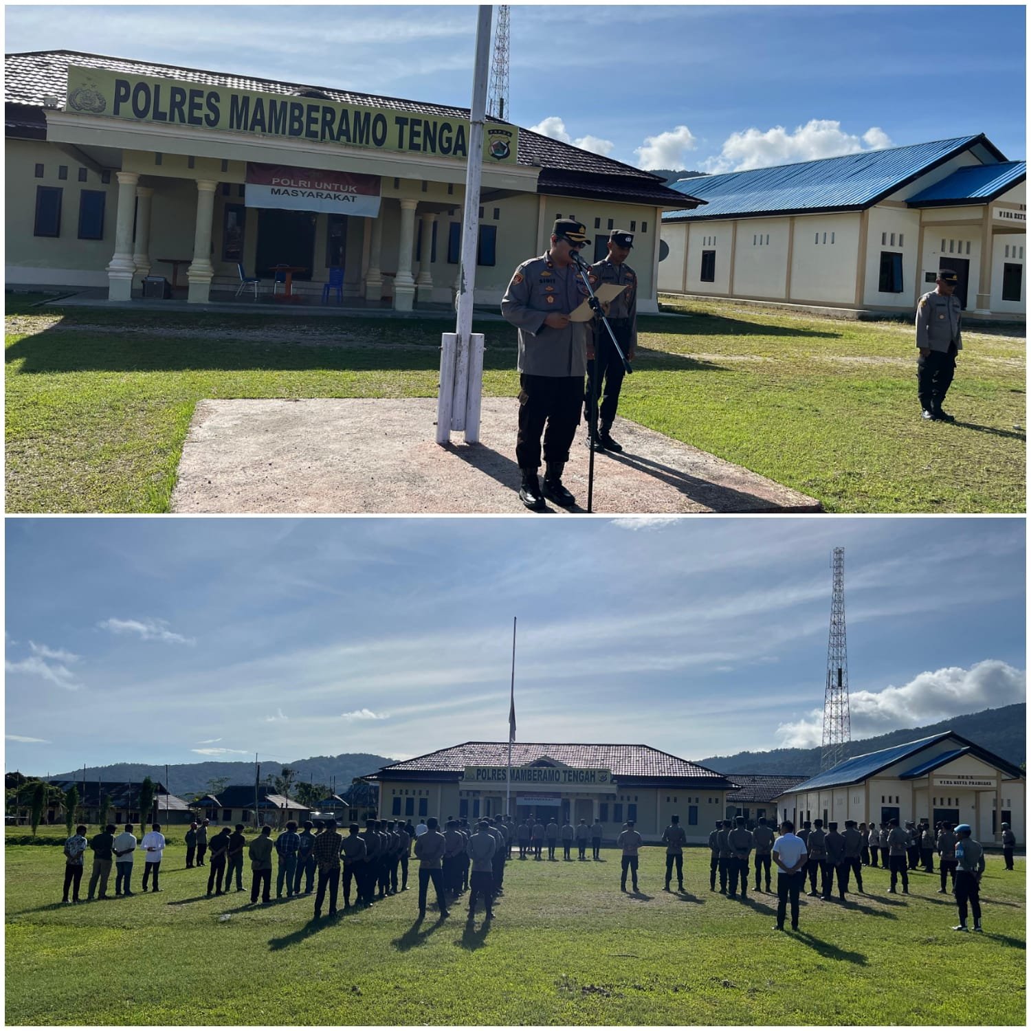 Apel pagi berlangsung tertib dan khidmat, menegaskan kembali komitmen seluruh anggota Polres Mamberamo Tengah untuk disiplin, profesionalisme, dan integritas dalam setiap tugas.