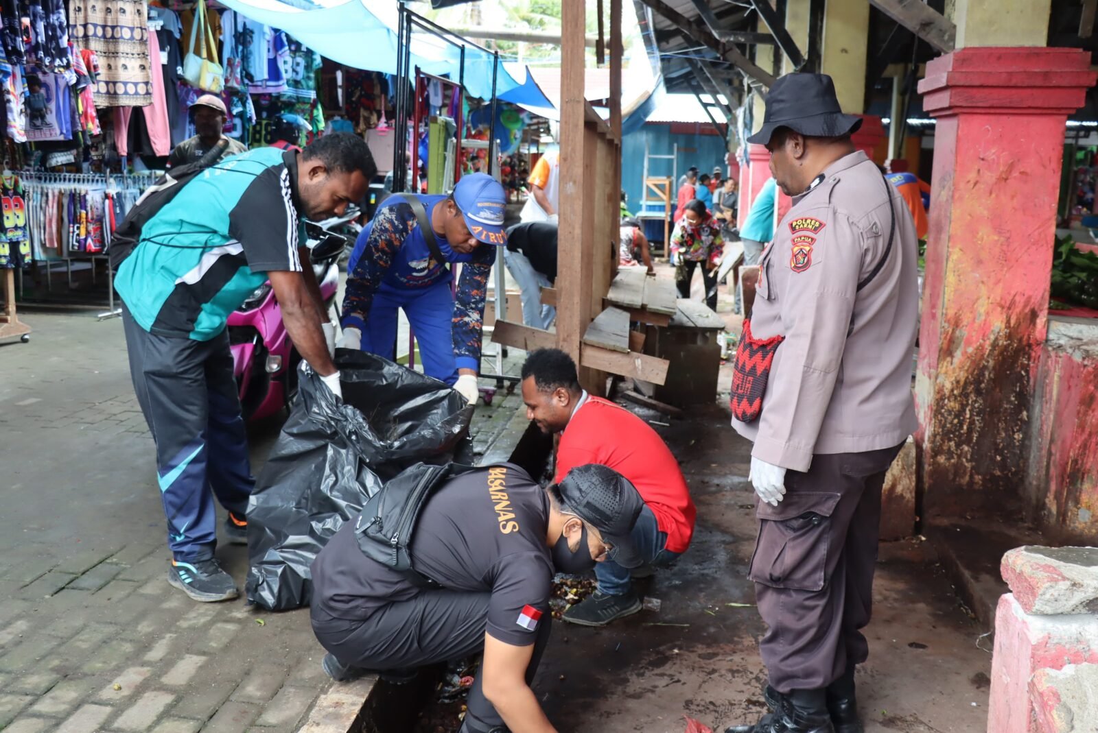 Sarmi – Pada hari Jum’at (27/2/26), Kapolres Sarmi, AKBP Ruben Palayukan, S.PT., S.I.K., bersama personelnya melaksanakan kegiatan karya bhakti yang diselenggarakan oleh Dandim 1712/Sarmi di Pasar Sentral Mararena, Kabupaten Sarmi.